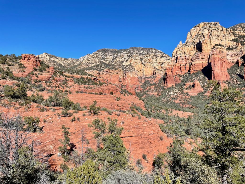 Our recent stay at Dead Horse Ranch State Parkin Cottonwood, Arizona, offered just the right level of activity. It was stunning, with gorgeous mountain views on all sides, and relatively quiet. But, because it’s a state park, there were folks coming and going all the time, and there were terrific campground hosts who were always zipping around in golf carts, keeping things neat and tidy. By the way, Dead Horse Ranch also (surprisingly) fit our proximity criteria — there were miles of wonderful walking and hiking trails right outside our door, the local town of Cottonwood was really fun, and we were short drives away from Jerome (old mining ghost town reinvented as an arts/food community) and Sedona.