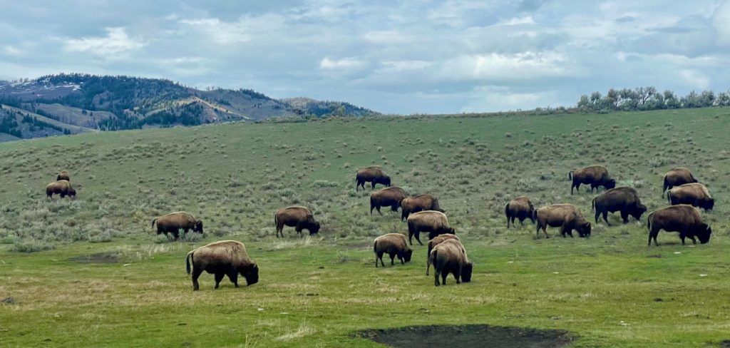 Then…wild animals. According to the NPS website, “there are nearly 300 species of birds, 16 species of fish, five species of amphibians, six species of reptiles, and 67 species of mammals—including seven native ungulate species and two bear species.” Did you know that Yellowstone is home to the largest concentration of mammals in the lower 48 states? That means that human visitors are wandering through the homes of elk, bison, black and grizzly bears, deer, bighorn sheep, pronghorns, wolves, and so many more. There’s an Instagram account called Tourons of Yellowstone that captures some of the ways people forget that they are visitors, this is not a zoo, and the rangers are not kidding (neither are the bison – they may look funny, but they don’t seem to have much of a sense of humor).