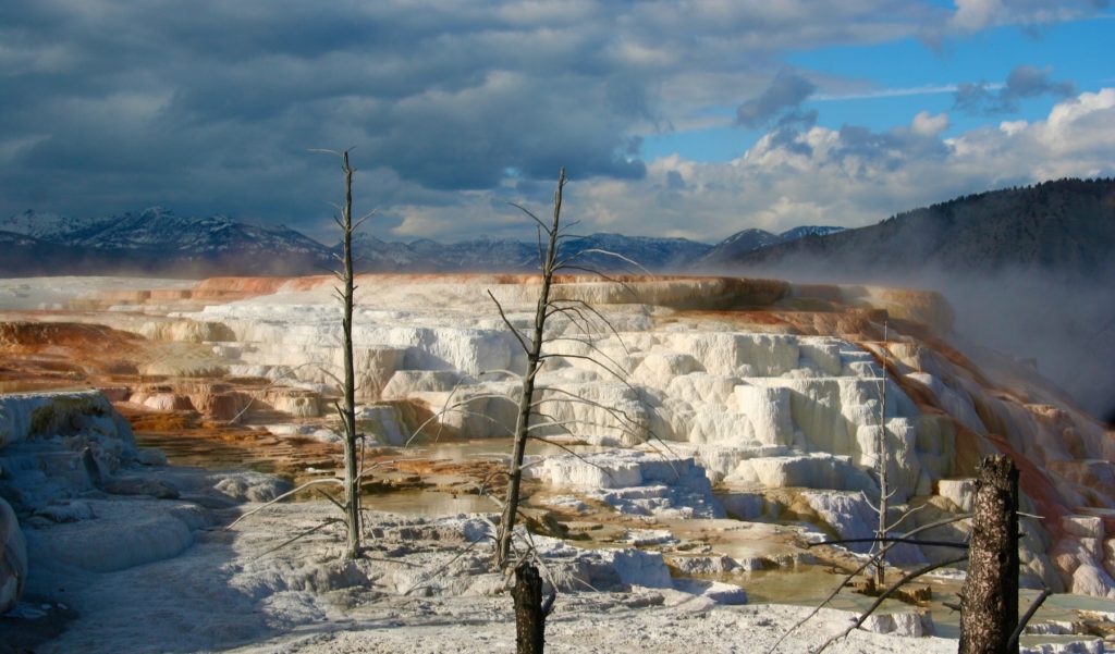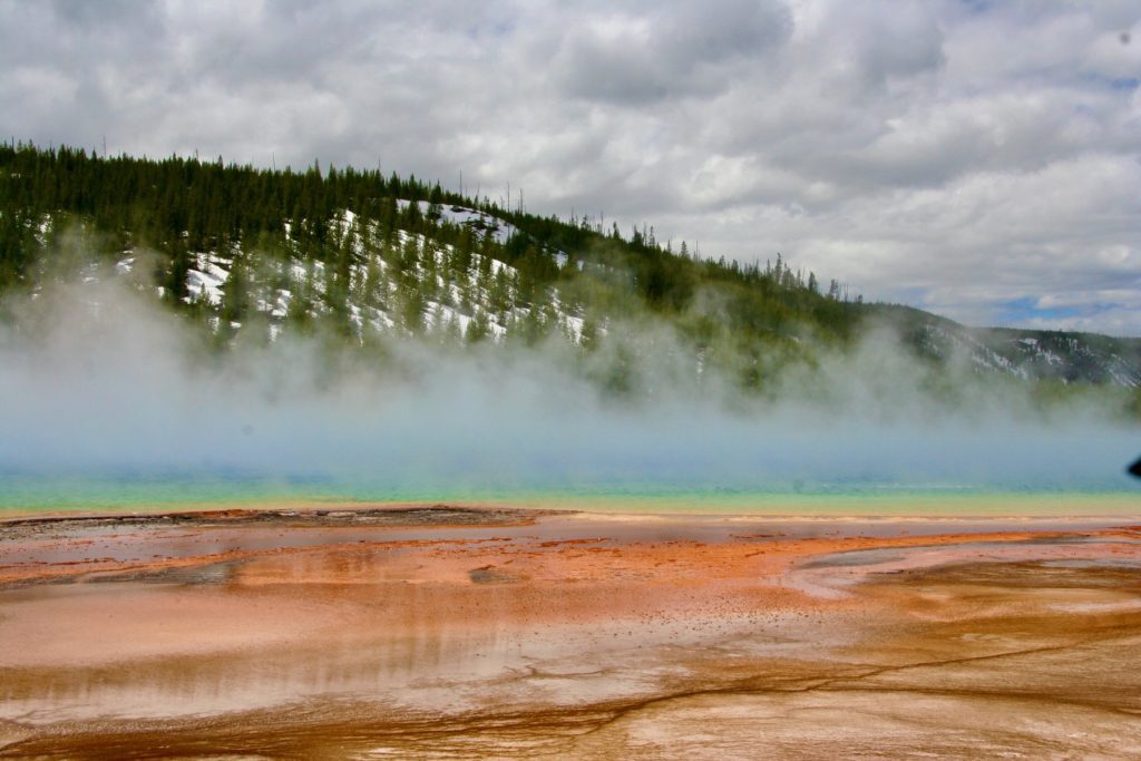First…those geysers, hot springs, and bubbling mud pots are fascinating, but best observed from a safe distance. Take Grand Prismatic Spring, for example. The third-largest hot spring in the world, it’s 200-330 feet in diameter, more than 121 feet deep, filled with water that’s between 145.4 and 188.6 degrees Fahrenheit, and surrounded by a large microbial mat. We’re not sure which part of that description was not enough to deter folks from stepping off the boardwalk, but it happens.