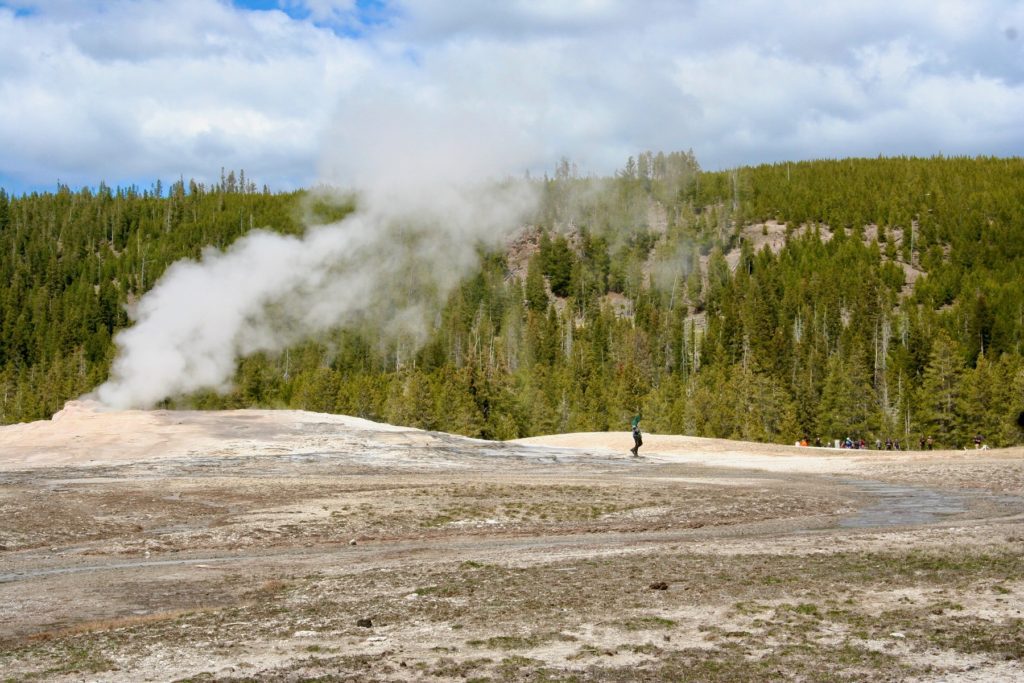 At Old Faithful — again, very hot water, shooting straight up into the air, surrounded by a large microbial mat that could crack at any time — we watched a father of four small children walk right up to the edge of the geyser, snap a photo, and casually walk back to his family. We then watched him have some very long and involved conversations with the rangers (in fact, when we left the park 30 minutes later, he was still being detained).